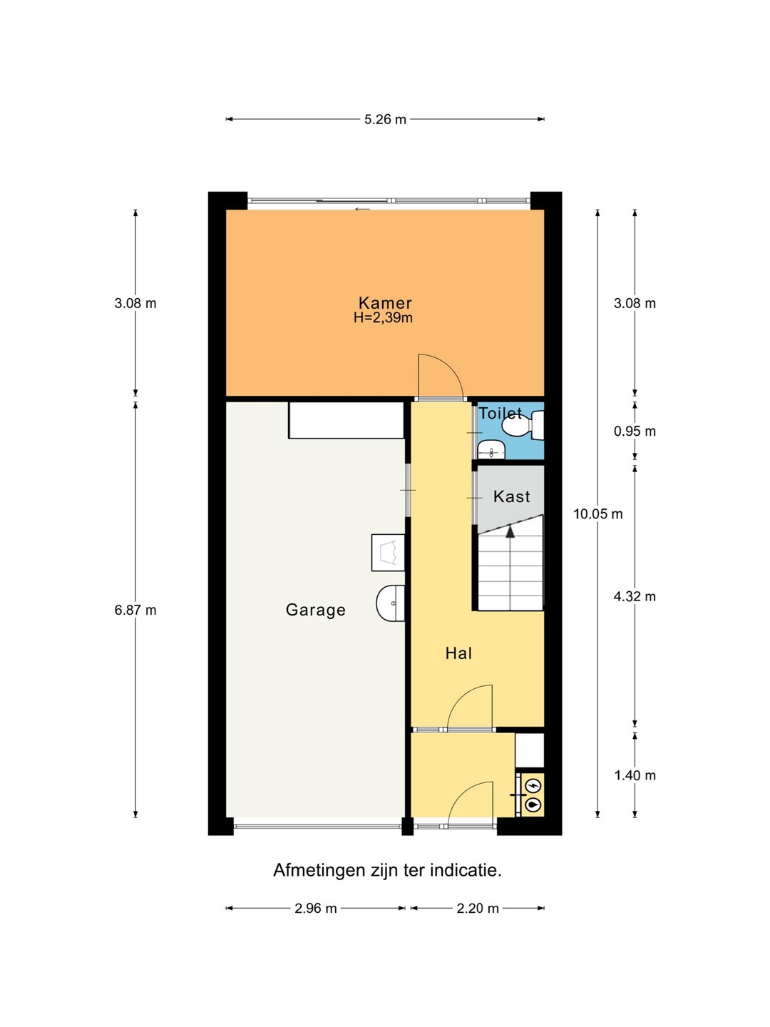 Op de begane grond bevindt zich een ruime garage, een toilet en de cv-ruimte en een grote kamer aan de achterzijde. Deze kamer is uitermate geschikt als werk- of praktijkruimte, maar kan uiteraard ook dienstdoen als hobbykamer, speelkamer of extra slaapkamer. Vanuit deze ruimte is er direct toegang tot de achtertuin.