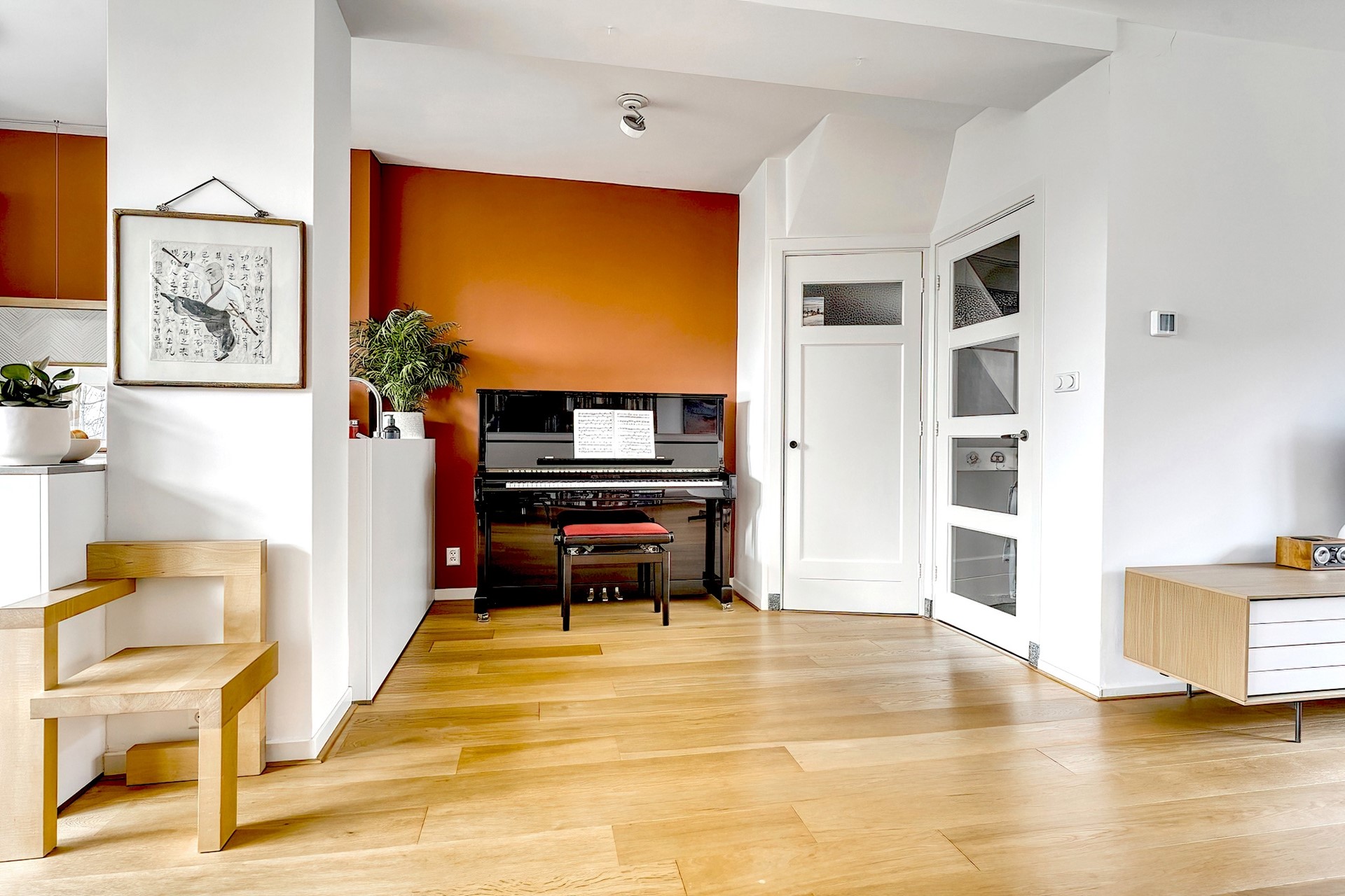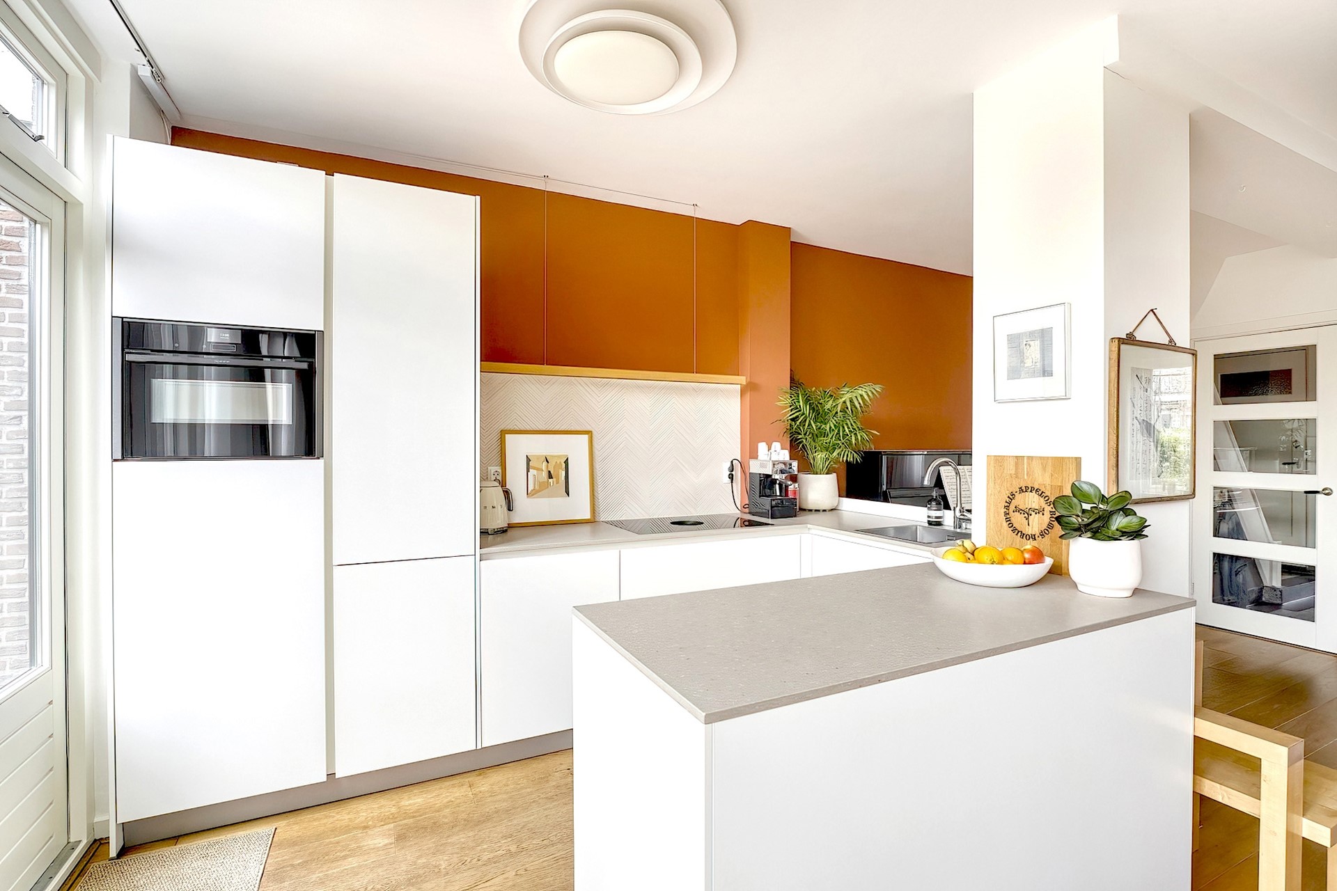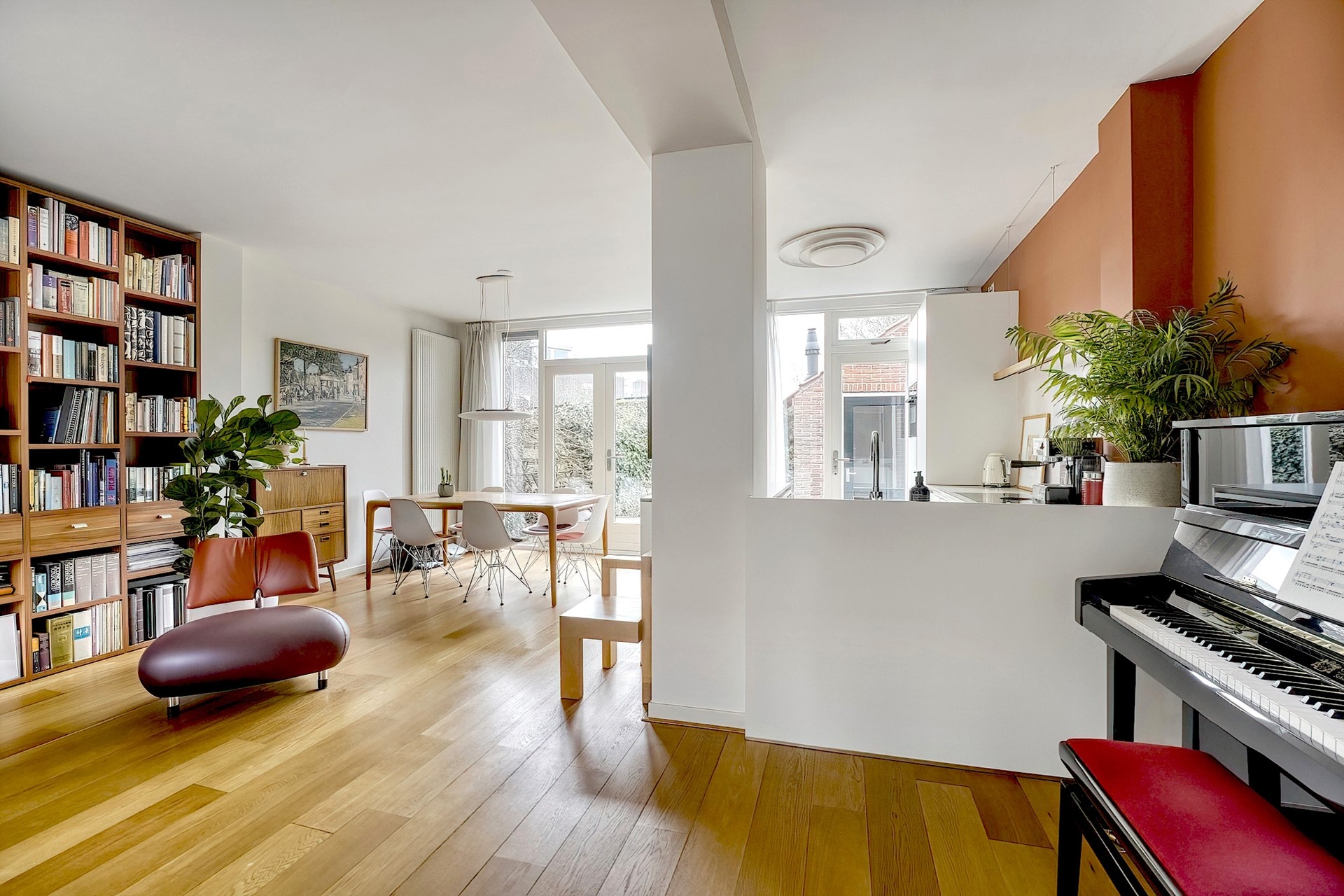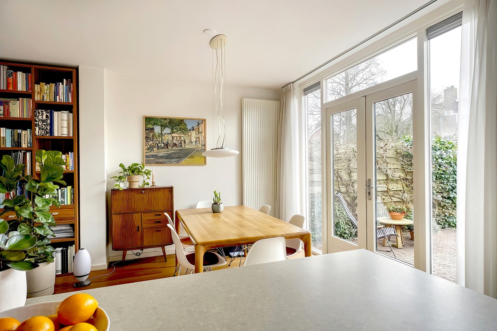 De uitgebouwde begane grond biedt een royale leefruimte met volop daglicht en een moderne open keuken (2024) die van alle gemakken is voorzien, te weten een Bora-inductie kookplaat, vaatwasser, koelkast, combi-oven en zelfs een wijnklimaatkast. De keuken biedt naar alle kanten contact met de woonkamer. Dankzij de uitbouw is er een fijne, open sfeer ontstaan die perfect is voor zowel het dagelijkse gezinsleven als gezellige avonden met vrienden. Vanuit de woonkamer zijn er dubbele openslaande deuren en een aparte loopdeur naar de achtertuin.