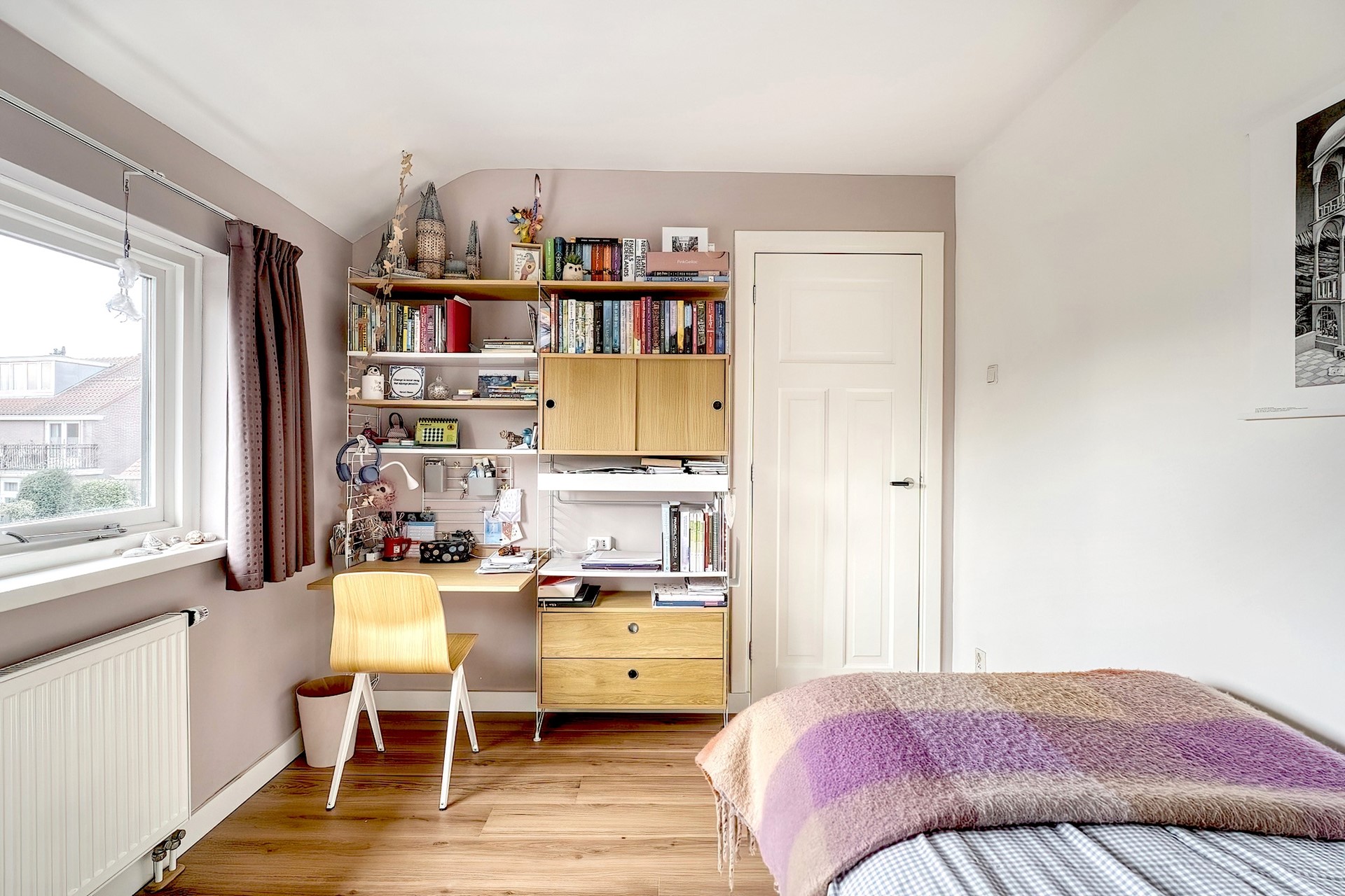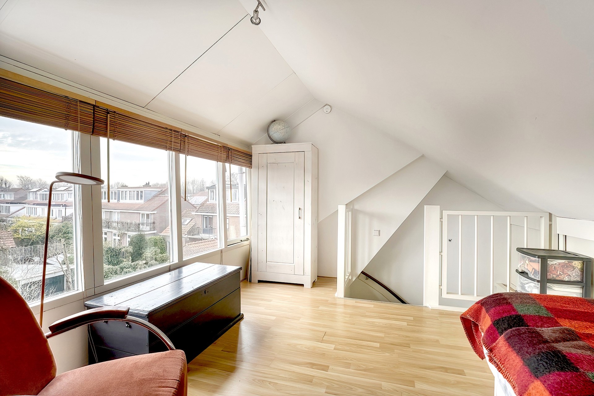 De woning beschikt daarnaast over een grote zolderkamer met nokverhoging, waardoor er uitzonderlijk veel ruimte en licht is. De ramen over de volledige achterzijde zorgen voor een prettige lichtinval en maken deze verdieping uitermate geschikt als extra slaapkamer, werkkamer of hobbyruimte. Achter het schuine dak is met schuifdeuren nog veel bergruimte verwerkt.
