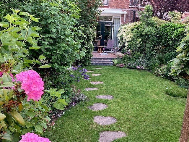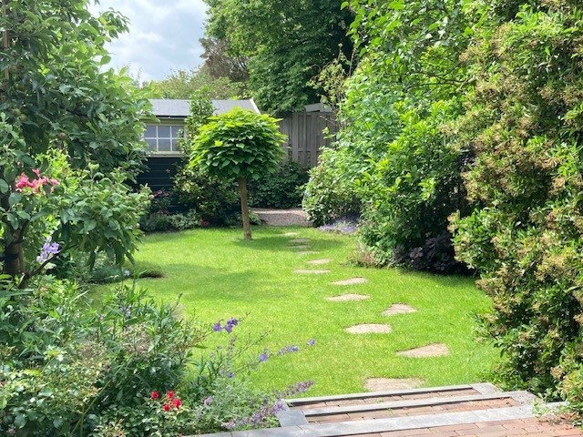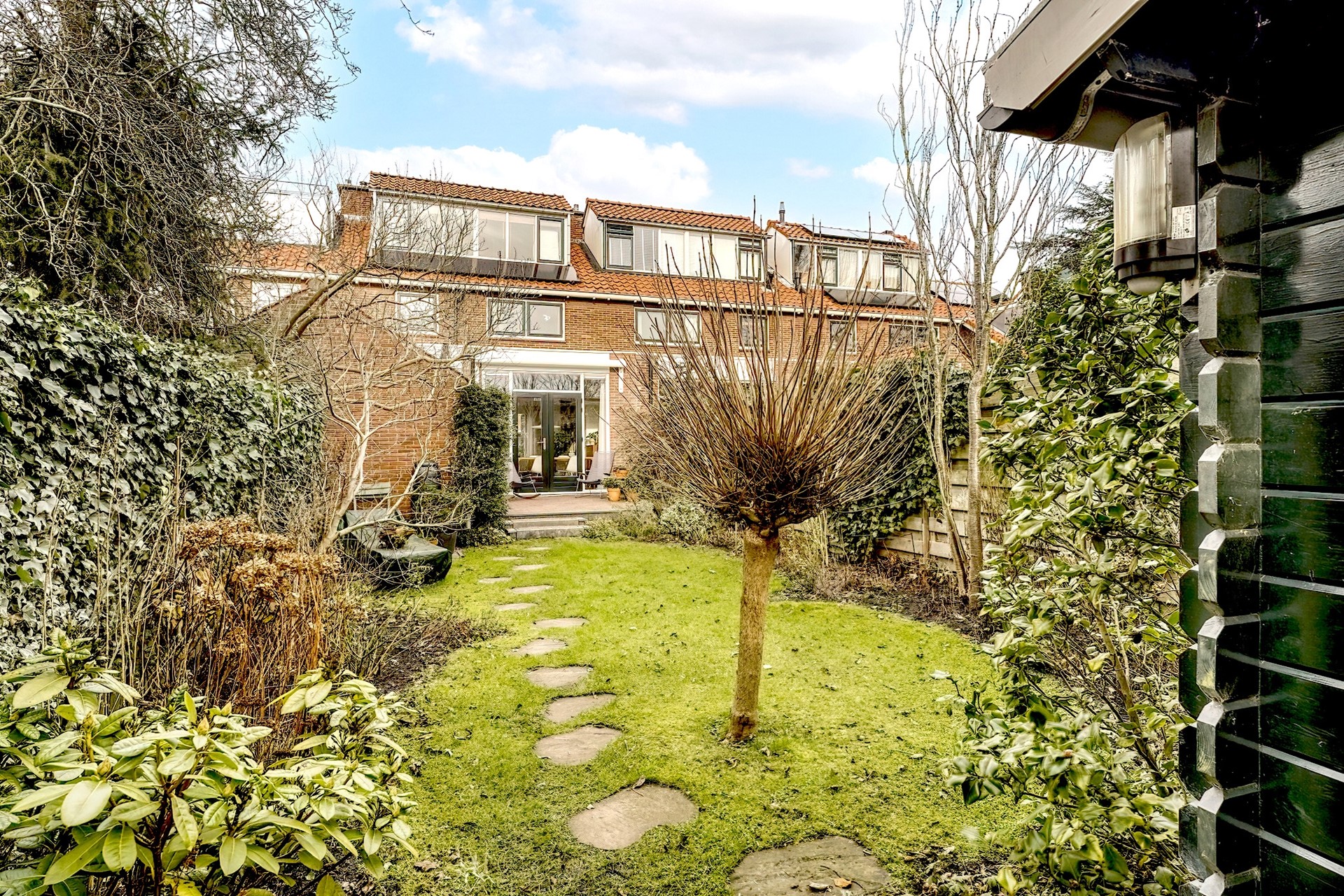 De diepe, met smaak verzorgde groene achtertuin op het zuiden is een absolute plus: zonnig, vrij gelegen en zonder achterburen, wat zorgt voor optimale privacy. Achterin de tuin bevindt zich een poort naar de achterom en een tuinschuur voor fietsen, tuingereedschap etc.
