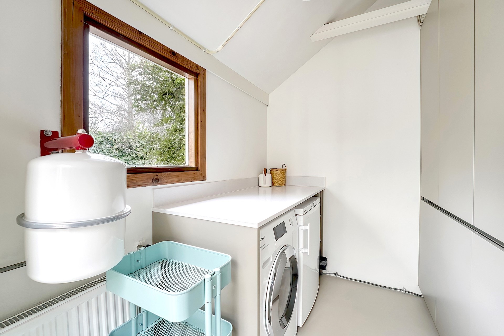 Vanuit de keuken is er met een enkele stap toegang tot de recent tot bijkeuken verbouwde schuur. Deze voormalige schuur is (deels) geïsoleerd en in 2025 voorzien van een stenen aanrechtblad en keukenmeubel met veel bergruimte. Onder het aanrechtblad is ruimte voor een wasmachine en een vriezer/droger. In de bijkeuken bevindt zich ook de recente (2021) verwarmingsketel (combi).
