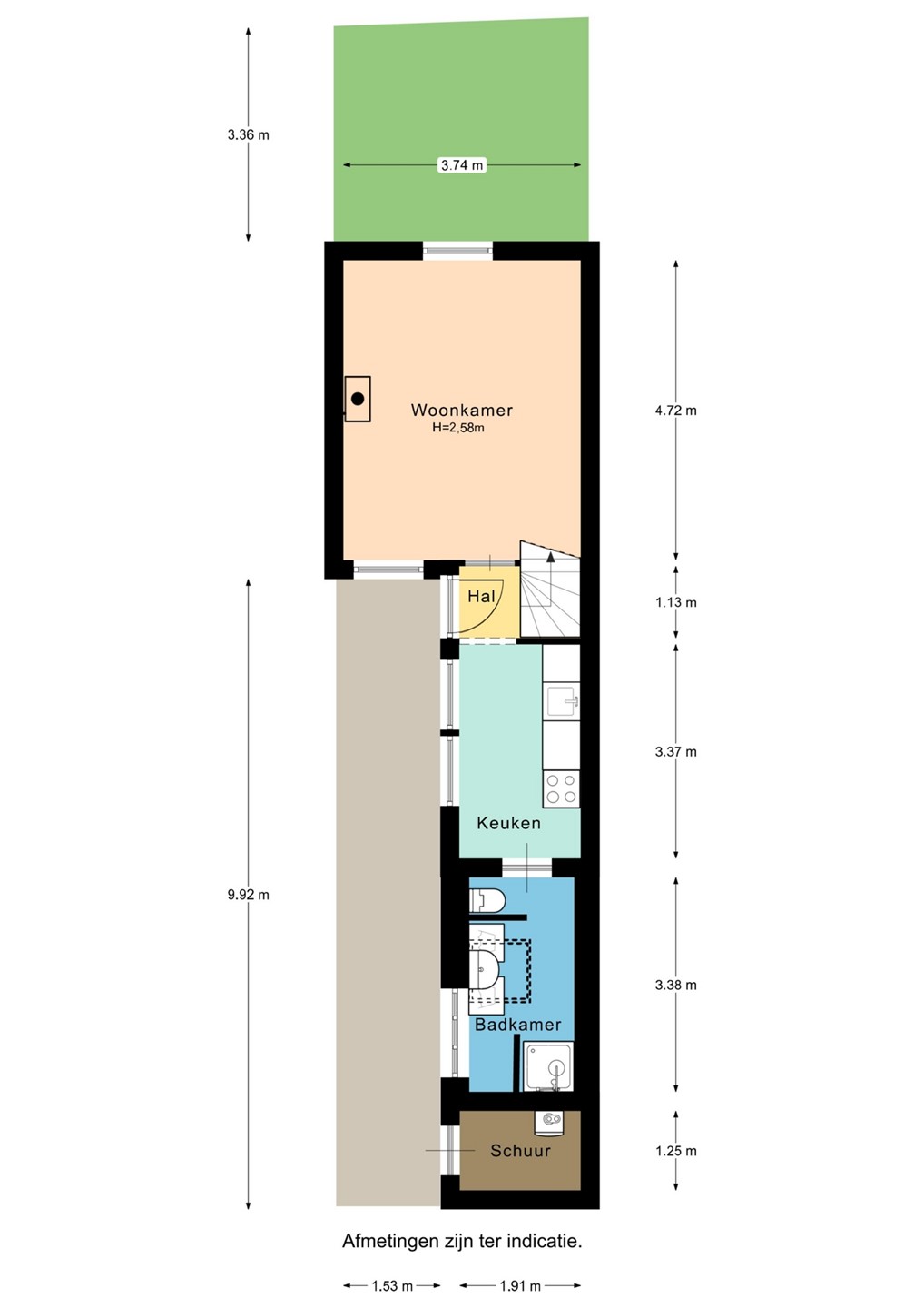 • Woonoppervlakte ca. 50 m², perceel 73 m²